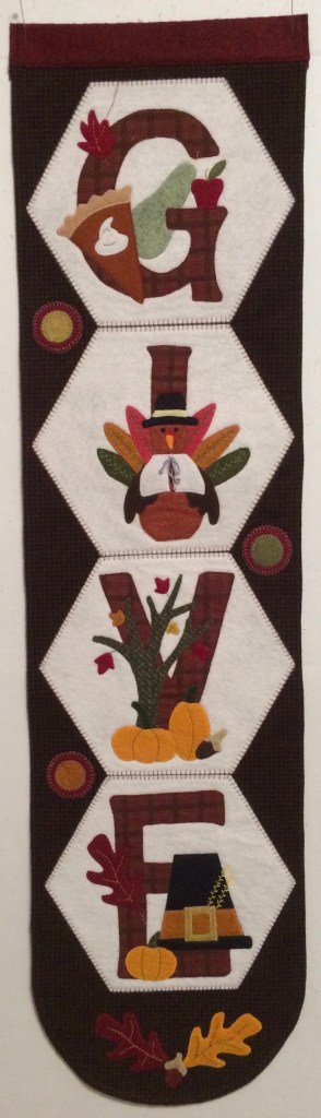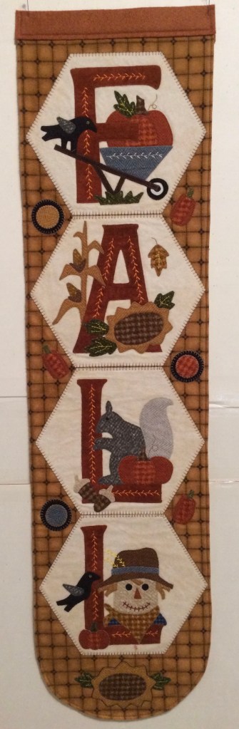 April showers bring May’s flowers—22″ x40″. This cheerful wall hanging is for sale for $65.