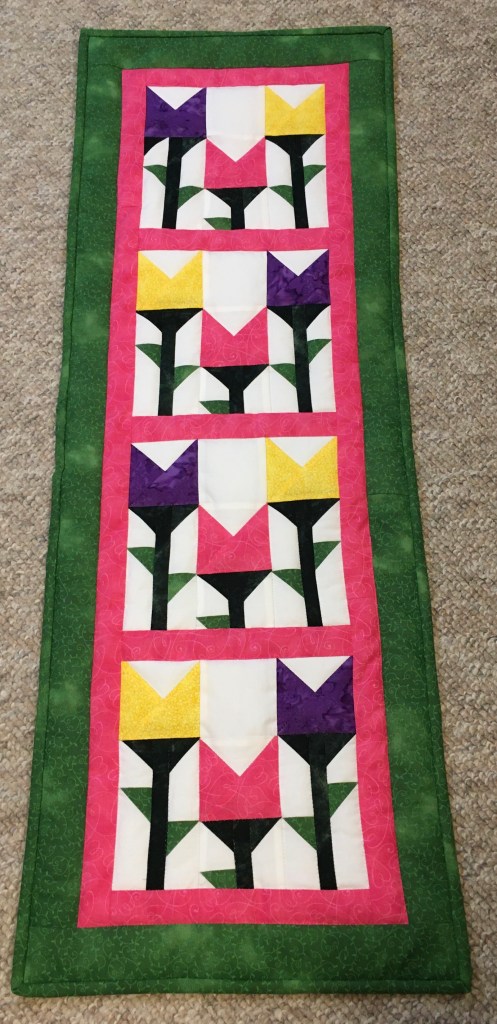 Have you been to the Wichita Botanical Gardens in April. The number of different tulips is amazing! This 13″ x 37″ table runner is the next best thing to a visit to the gardens! $45