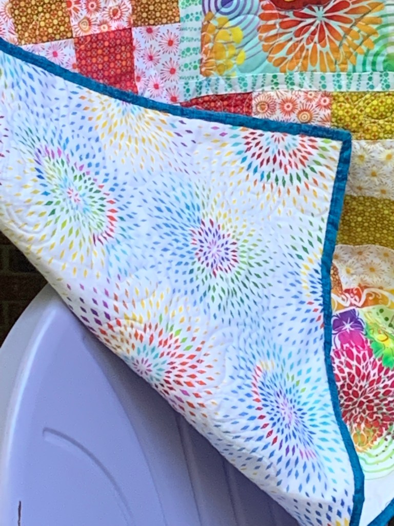 And backing reminds me of summer fireworks on the 4th or after a baseball game. The quilt is for sale for $450.