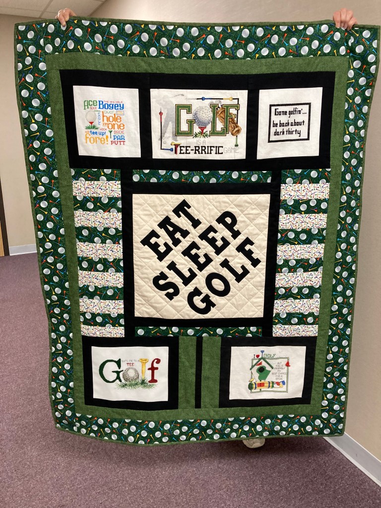 The next photo is a quilt that has probably already sold but just wanted you all to see it! Sharon has lots of friends and “friends of friends” that love to golf and she has specialized in some great golf theme quilts.