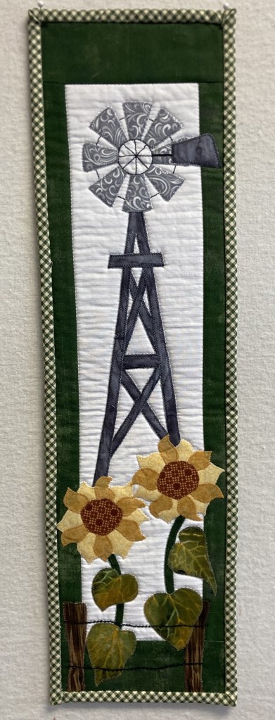 What can be more Kansan? Windmills, barb wire and sunflowers…Perfect accent piece with which to proclaim your pride in your birth place or adopted home. Measuring 12″ x 28″ , it would fit i on an office wall. Know someone who lives far away and would appreciate a suggestion of summer in Kansas? $40