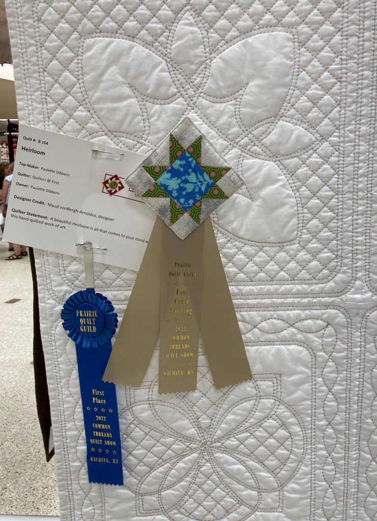 Update from the Common Threads Quilt Show— I had a great time! So many exciting quilts to see–so much lovely fabric to buy! Added bonus was getting to know some of the members of the Prairie Quilt Guild. And ribbons were won!!!!
