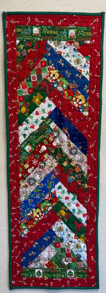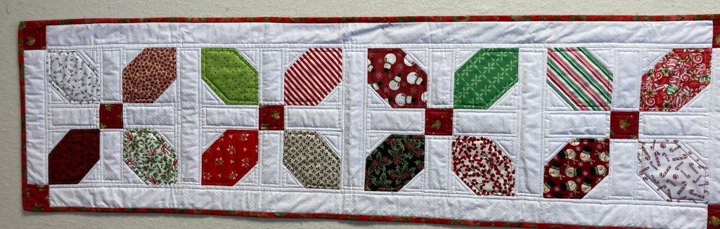 If it is “almost” fall, is it too early to be planning for the Christmas holidays? I don’t think so- Two Christmas table runners were completed.