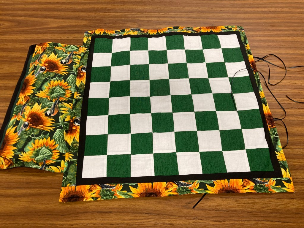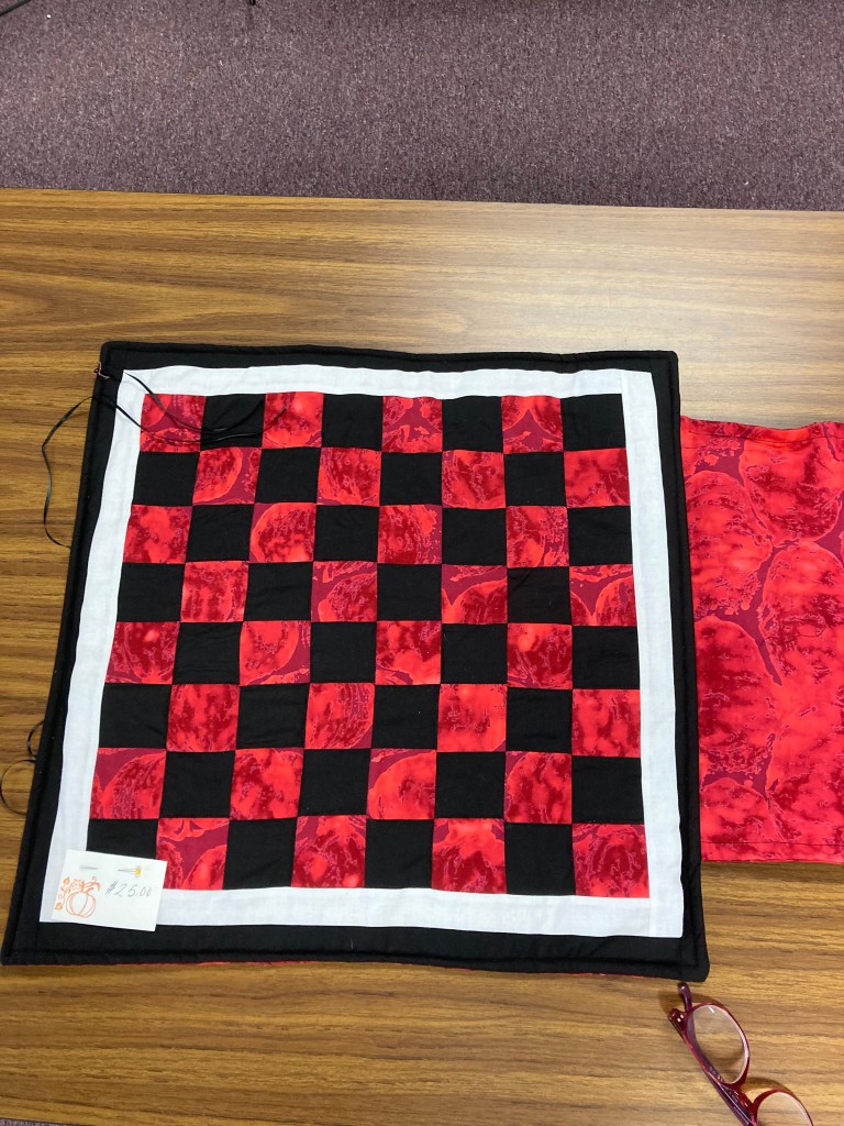 What about portable checkerboards that can be rolled up and easy to carry? The checkers are in a zippered pouch that is attached to the “board”. My mother loved to play simple games when she was in skilled nursing. This checker board would be easy to transport to the care facility when visiting. $25 each