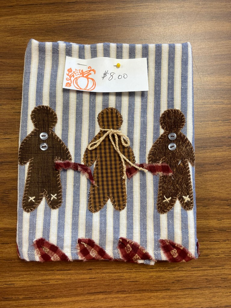No surprise we have lots and lots of pumpkins for an October sale. These coasters are made from homespun and are $5 each.