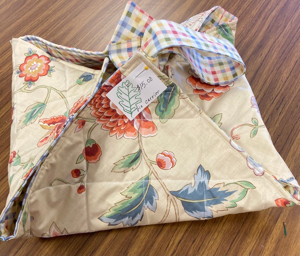 Fall seems to be the season we think about pies–pumpkin or pecan or both for Thanksgiving. Have you had sweet potato pie? Family gatherings are great for the variety of pies brought to share –and bring them to the dinner in style with the simple quilted pie carrier.
