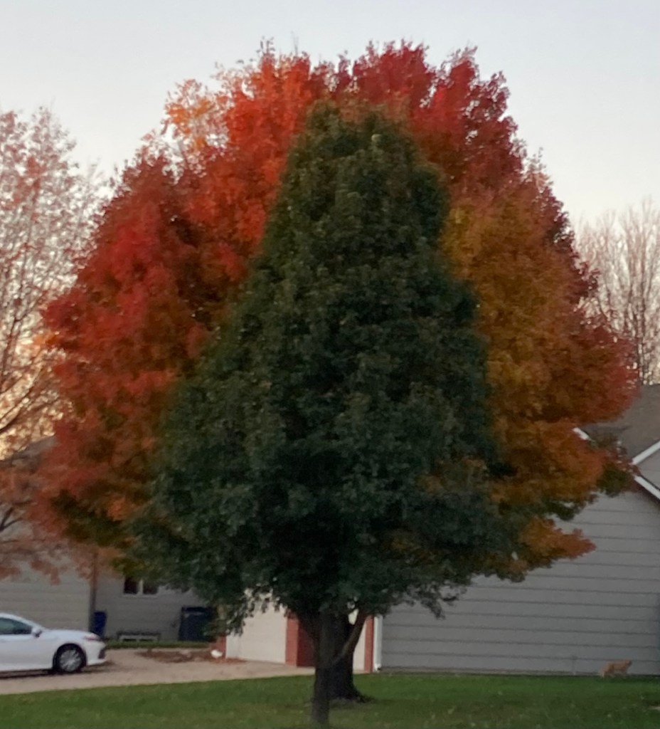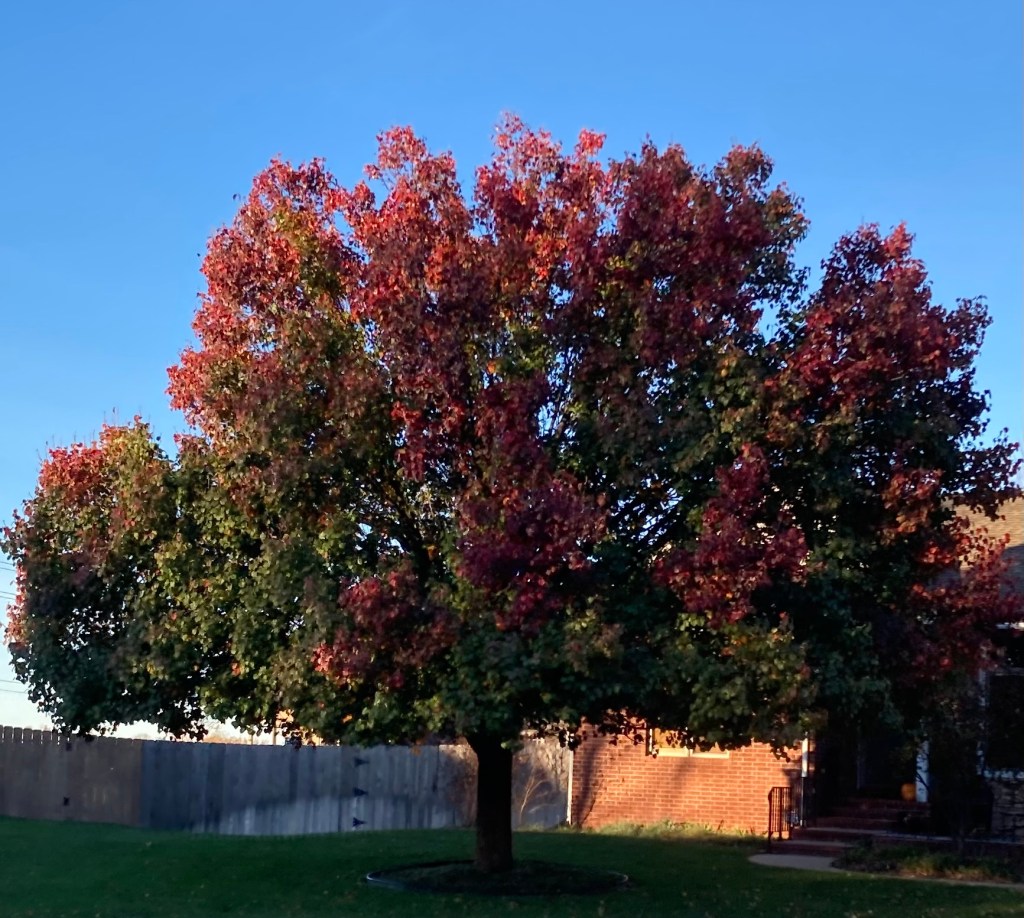 Who needs to go to New England to “see the leaves” when you can just walk around your neighborhood? This change toke forever to begin and then in a minute, the leaves are gone and it is winter.