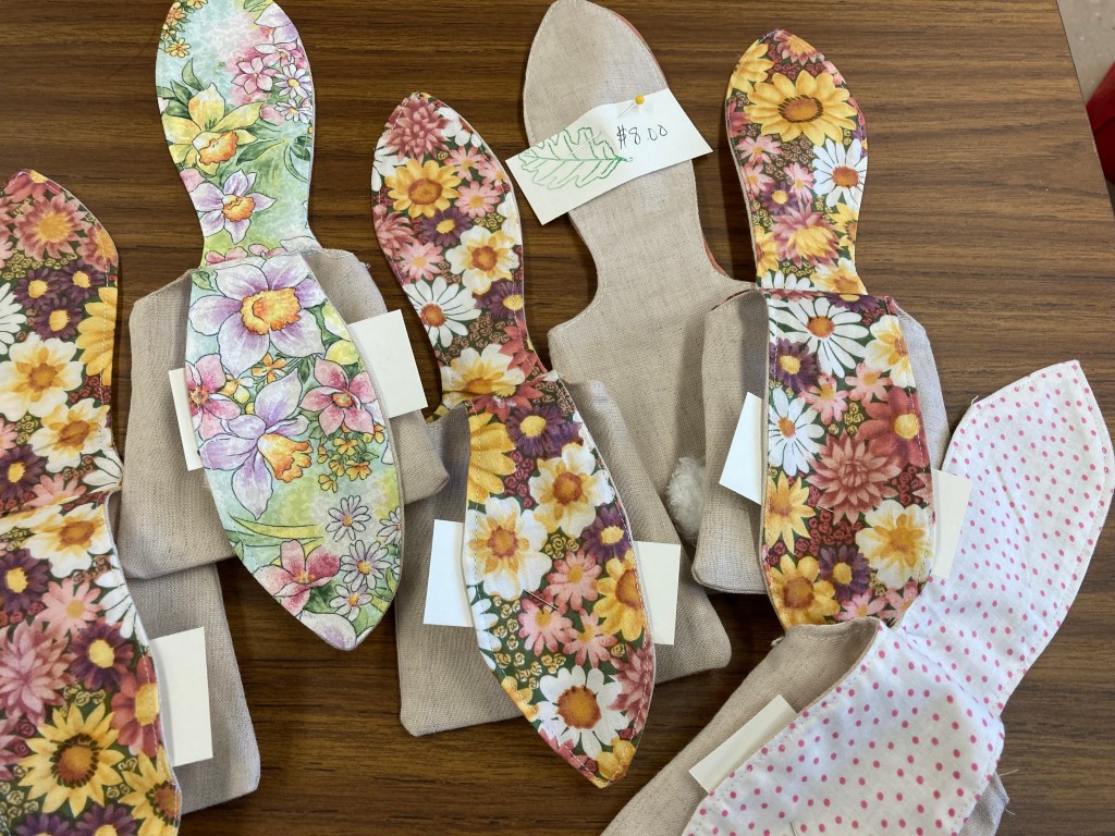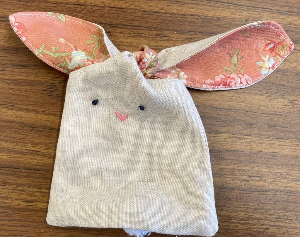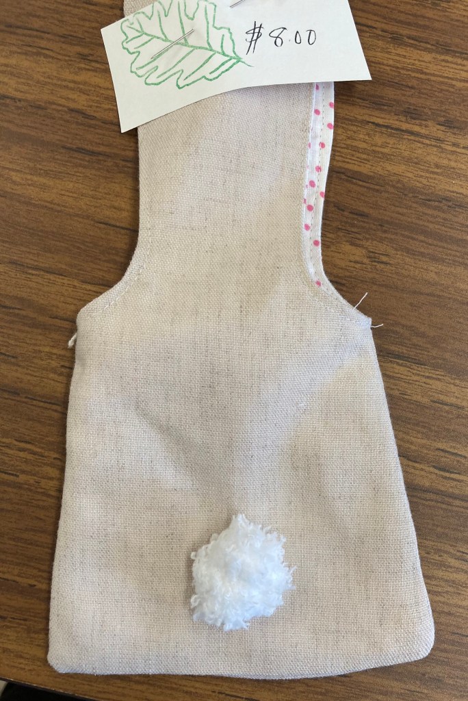 Bunny treat bags–with floral ears and and fluffy tail—-The tail is probably from donated yard the other quilters passed on! $8 each