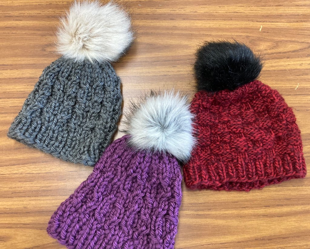 “They” are predicting a cold, snowy winter. So be prepared with a new hand crafted cap. These are all adult sizes. $20 each