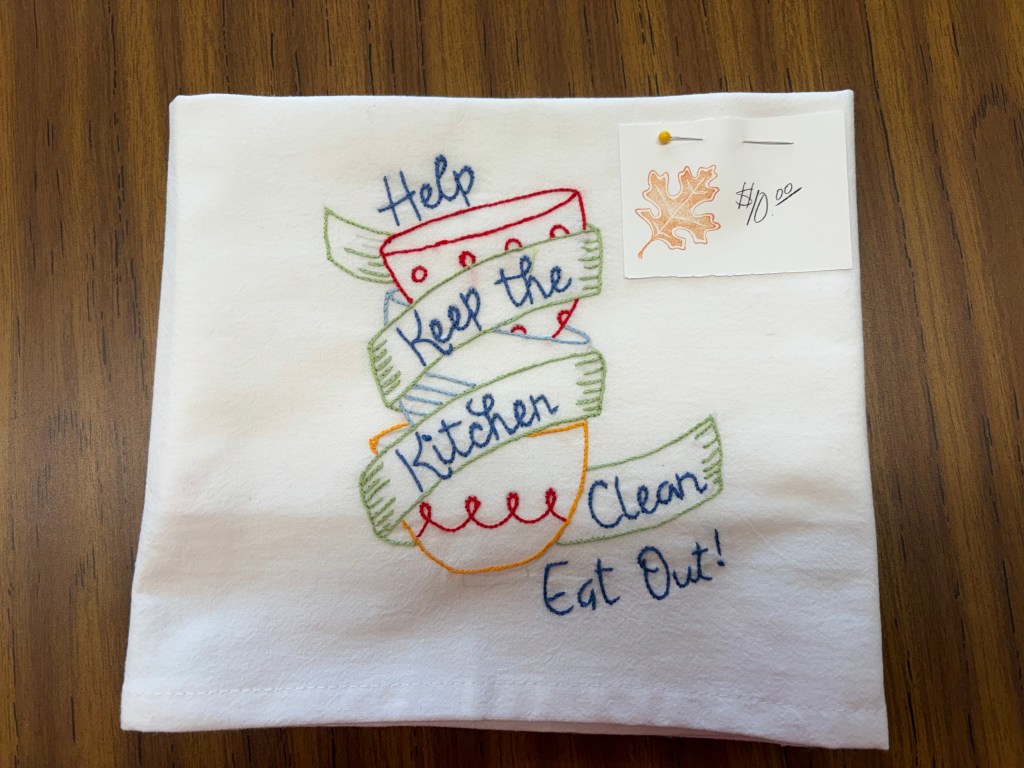 Here is a cleaning “hack”! Hand embroidered on 100% muslin. $10