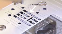 Normally, when the pressure foot is lowered onto the feed dogs, the movement of the feed dogs pulls the fabric past the needle and allows the stitches created from a top thread and bottom thread to be consistent.