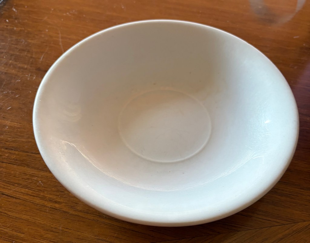 I have an iron stone saucer that belonged to my Grandpa Vanslyke (Van). Yep, it has a chip in it.