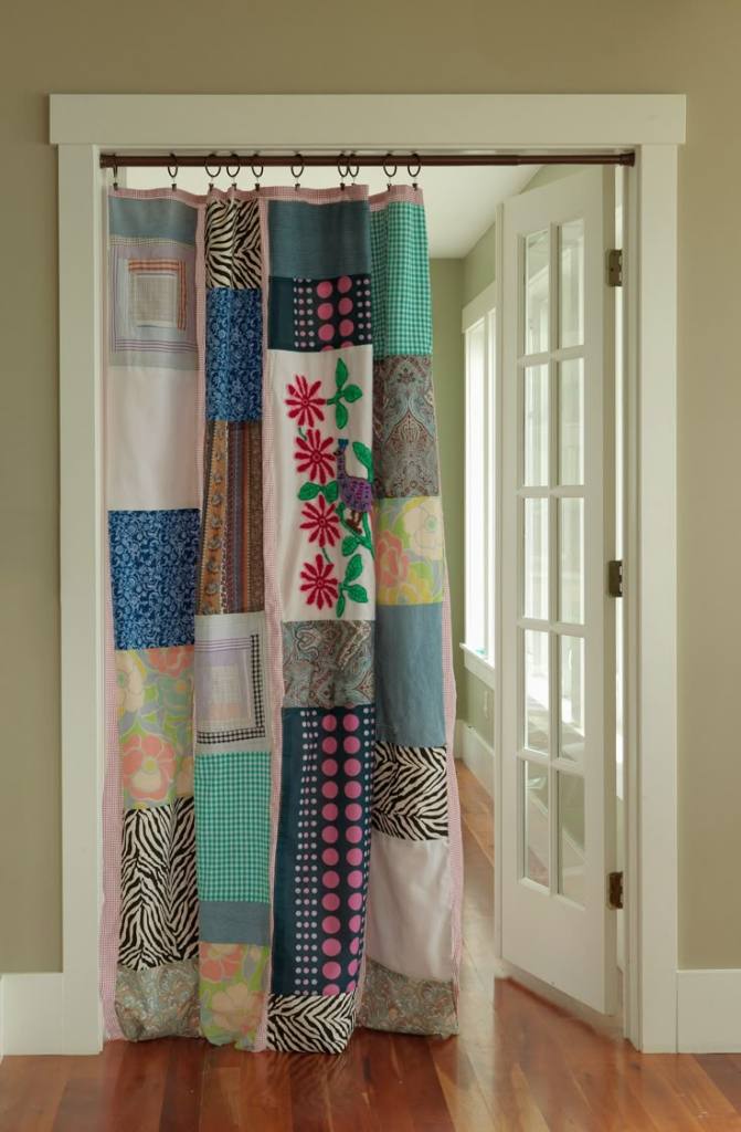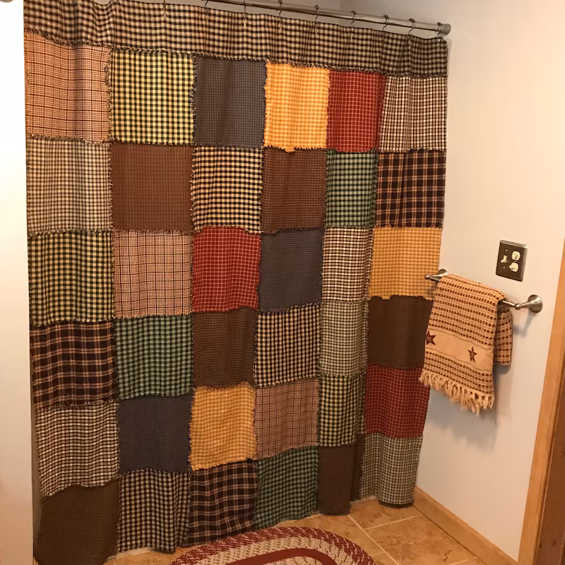 And shower curtains–with a liner of course. This isn’t my style, but another use of quilts.